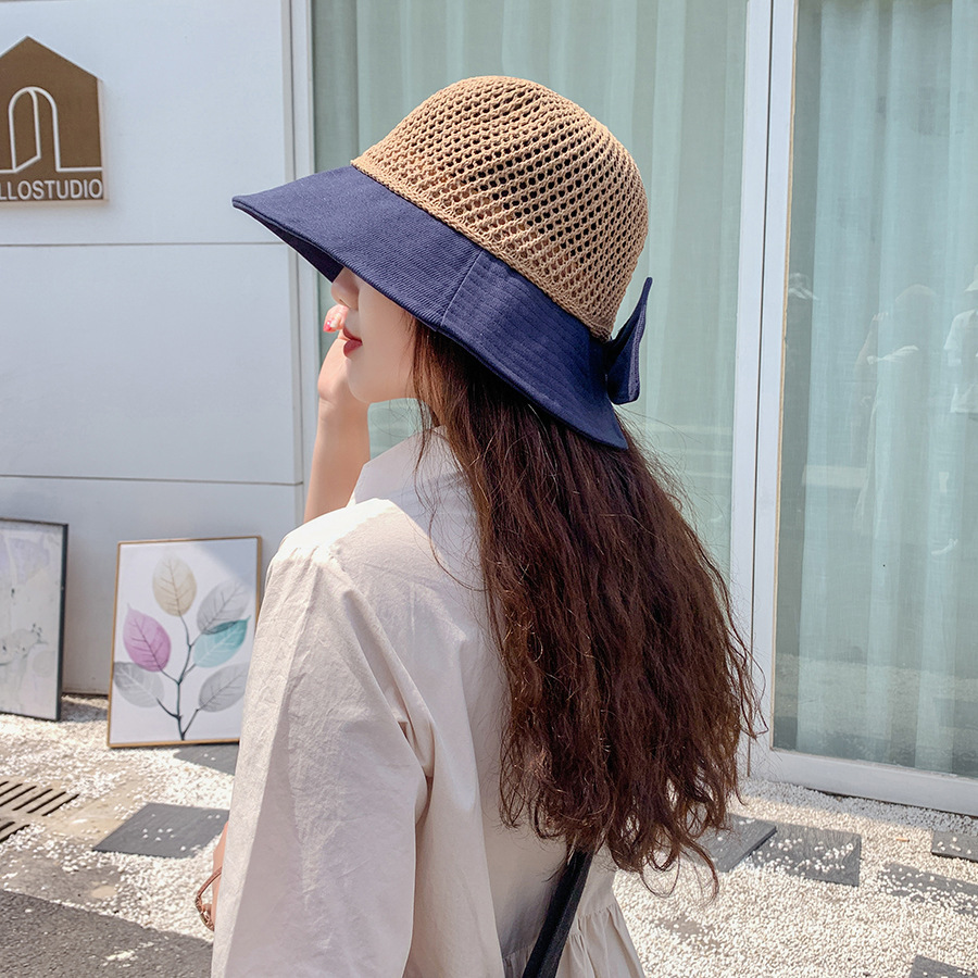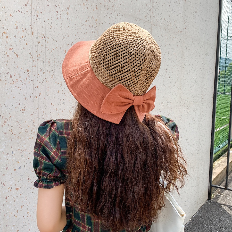 Women's bucket hat Korean summer dome hollow Cap Japanese cute bow shade Bucket hat Fashionable foldable sun shade bucket hat