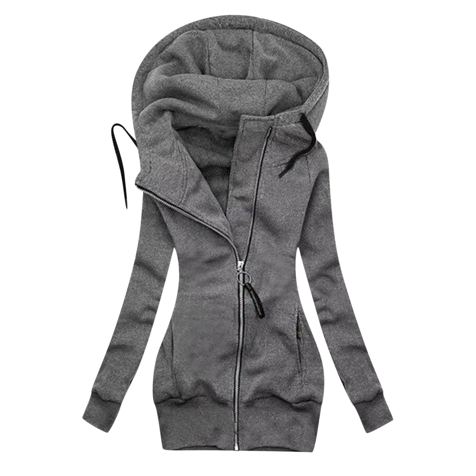 Women Fashion Solid Jacket Zipper Pocket Sweatshirt Long Sleeve Coat