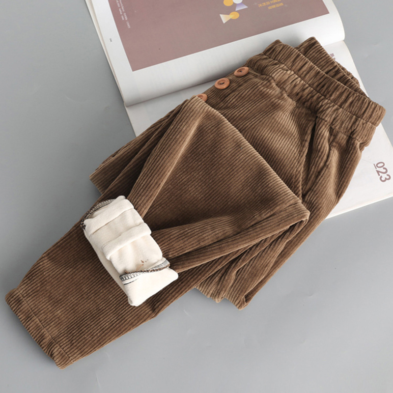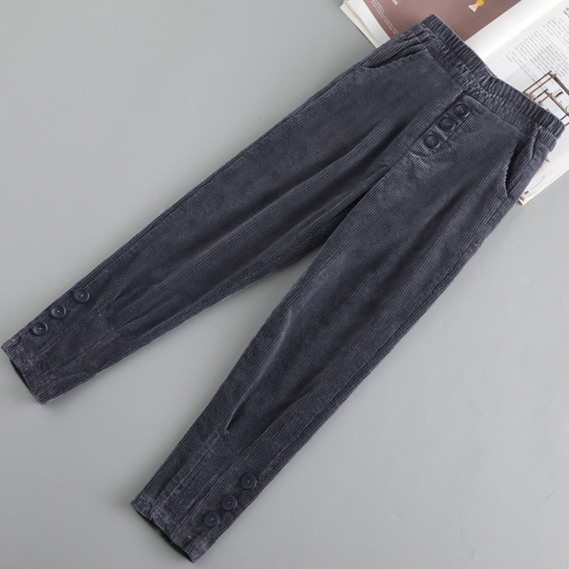 Rimocy 2021 Causal Corduroy Harem Pants Women Autumn Winter Button Thick Warm Pants Woman Plus Size 3XL Solid Sweatpants Ladies
