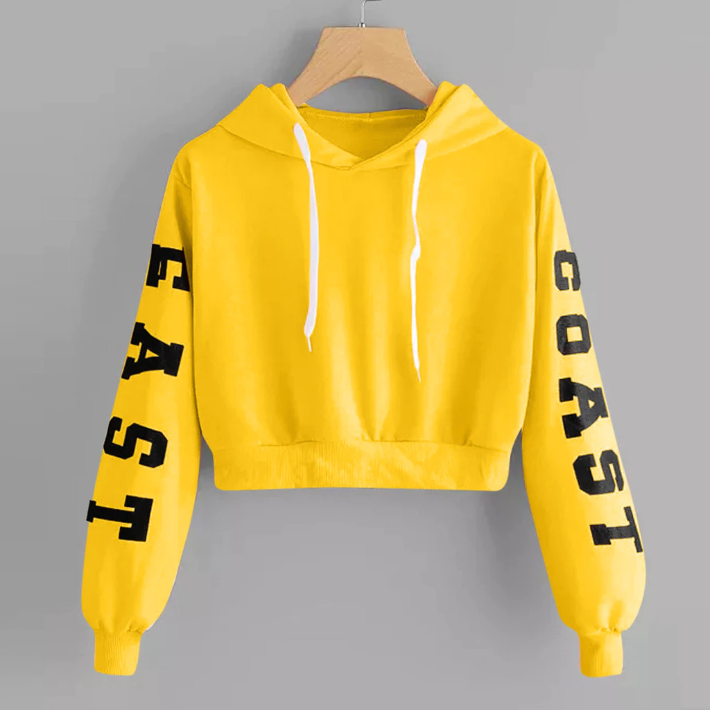 Cropped Hoodies Women Plus Size Casual Letter Print Long Sleeved Hooded Sweatshirts Short Oversized Hoodie Sudaderas Con Capucha