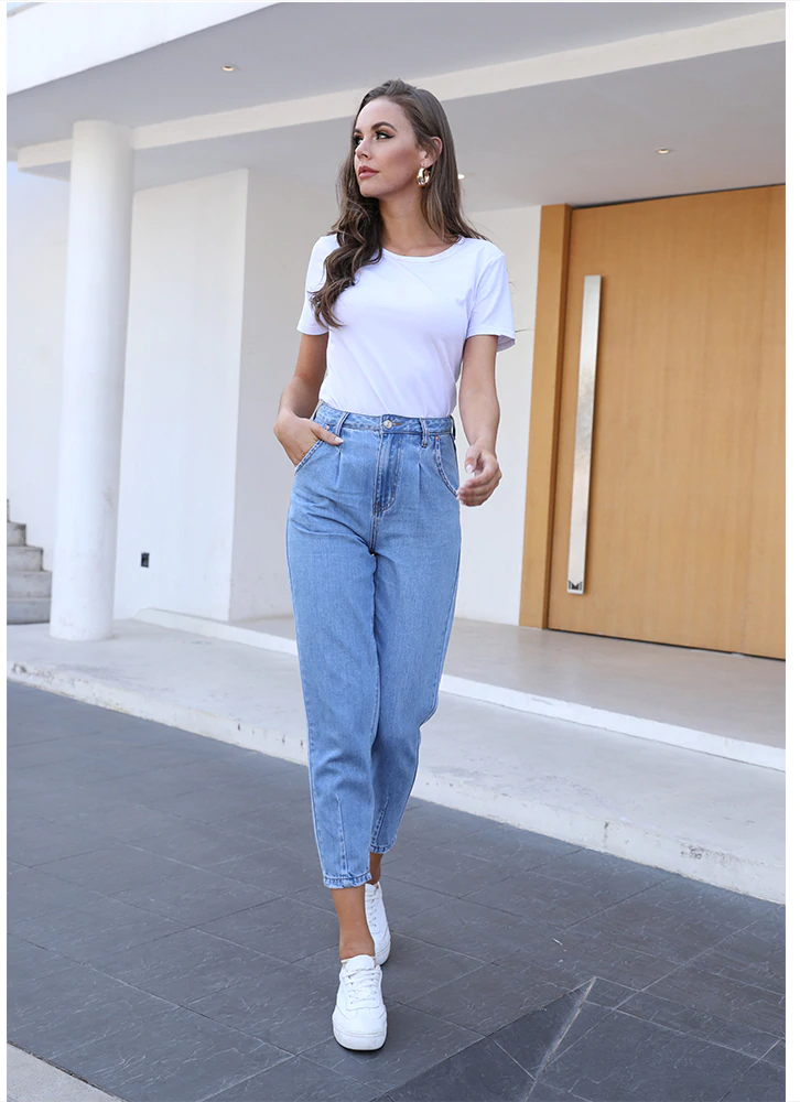 2021 Depony High Waist Mom Jeans Women Boyfriends Straight Jeans Femme 100% Cotton Loose Vintage Denim pants Vaqueros Mujer