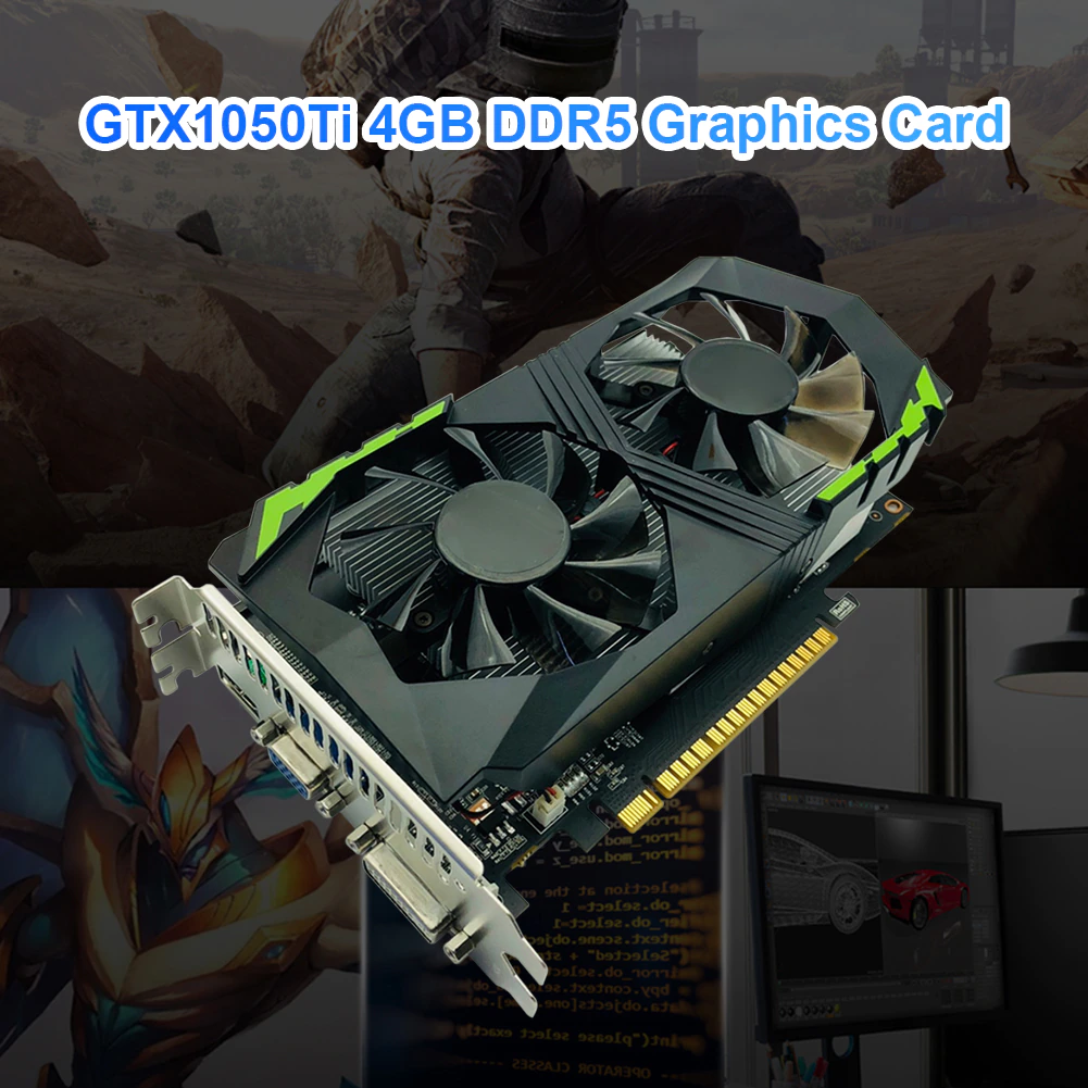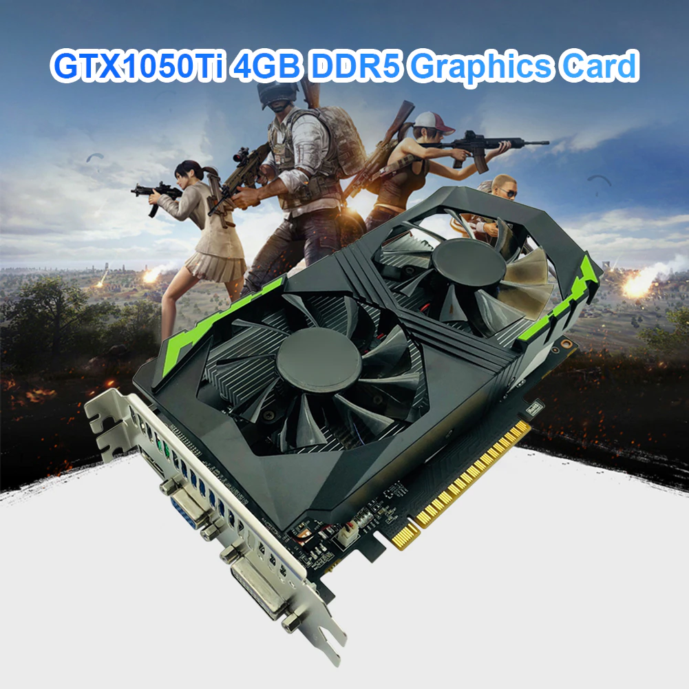 GTX1050Ti 4GB 128bit GDDR5 Video Card Desktop Computer PCI-Express 3.0 16X HDMI-Compatible DVI VGA Gaming Graphic Cards with Dual Cooling Fan for PUBG
