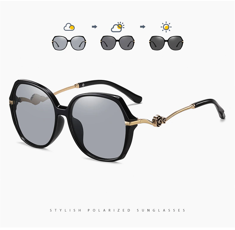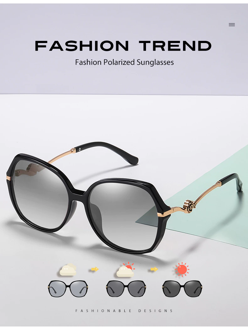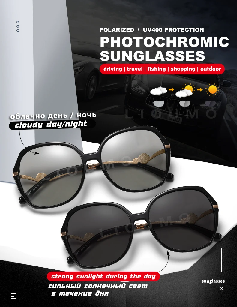 LIOUMO Brand Women Polarized Sunglasses Photochromic Design Big Frame Elegant Lady Sun Glasses Chameleon UV400 lunette de soleil
