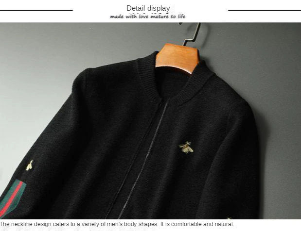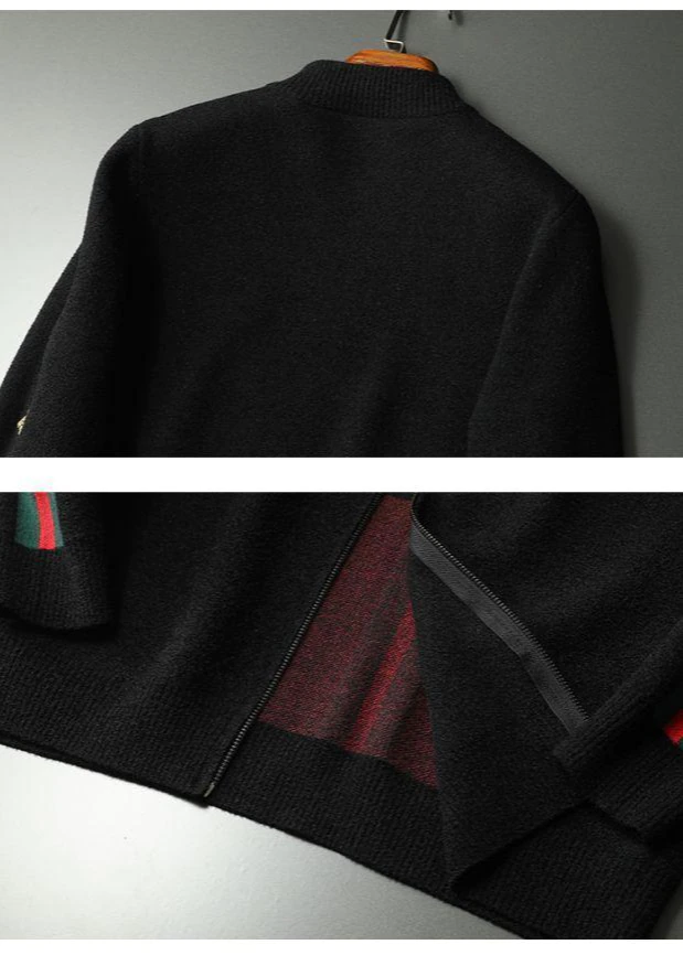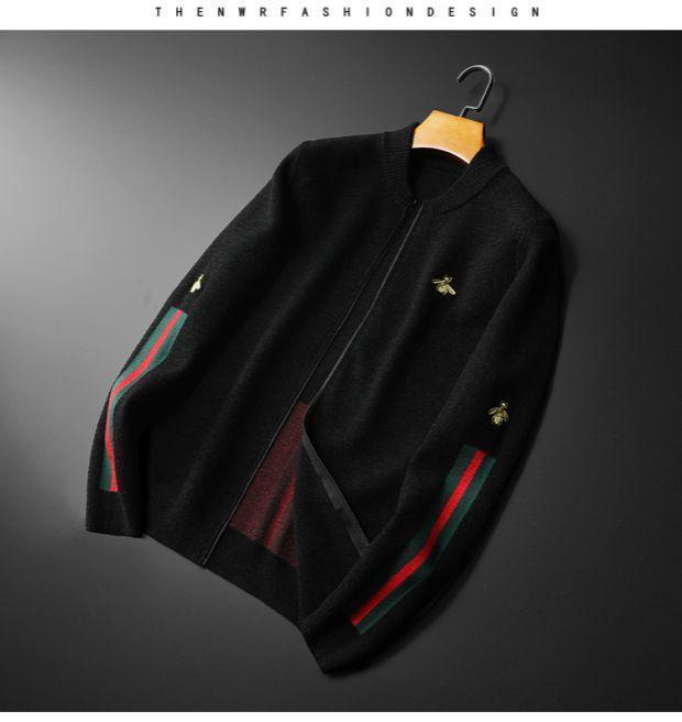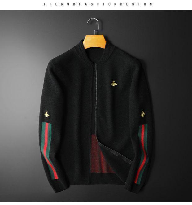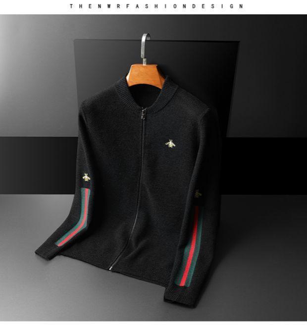 Little Bee Jacquard Knitted Cardigan Men's Autumn Spring and Autumn Thin Sweater Jacket Men