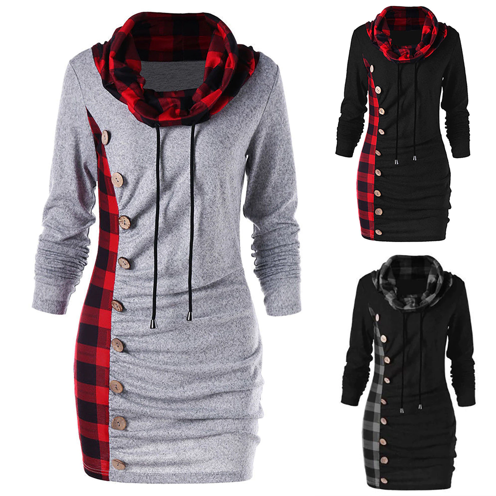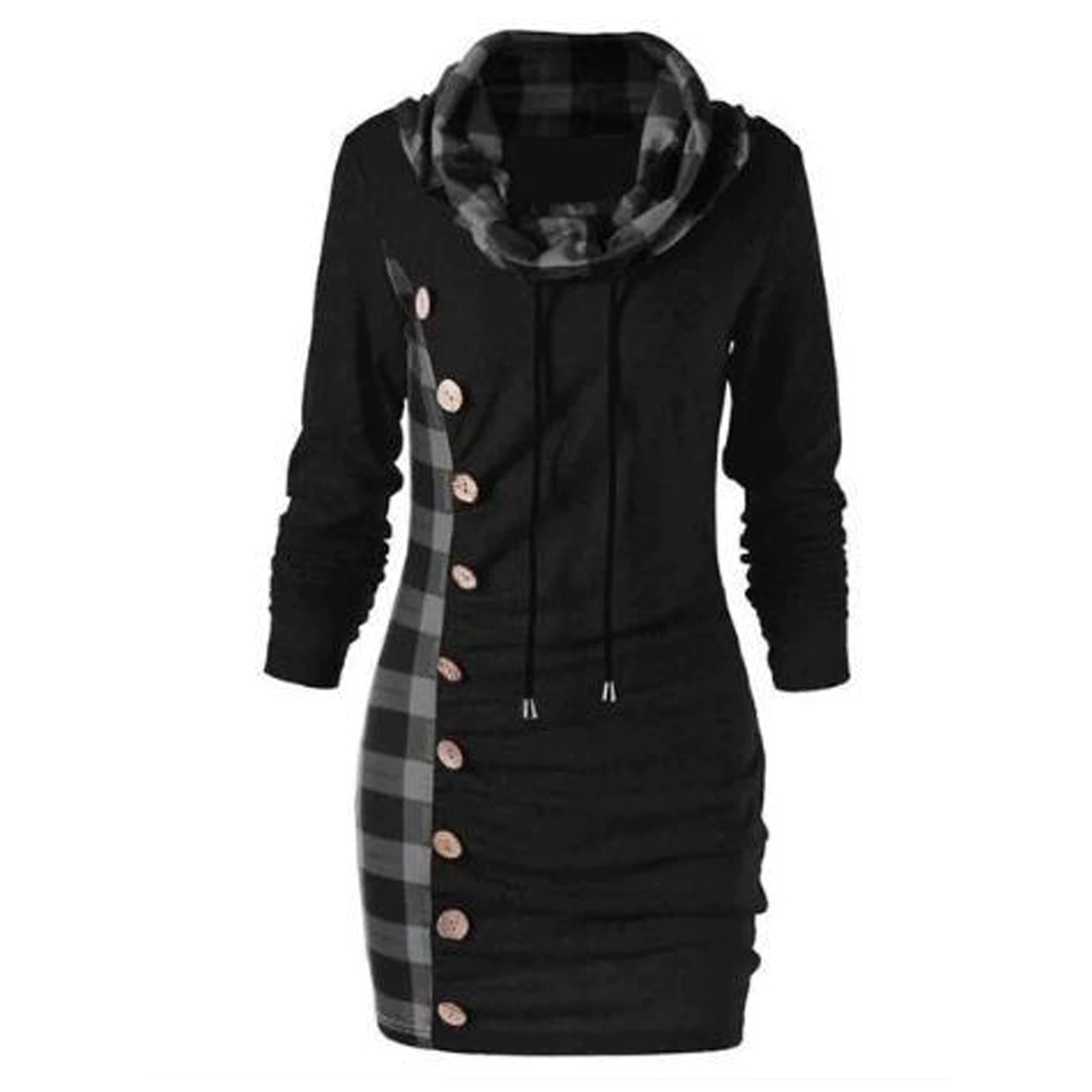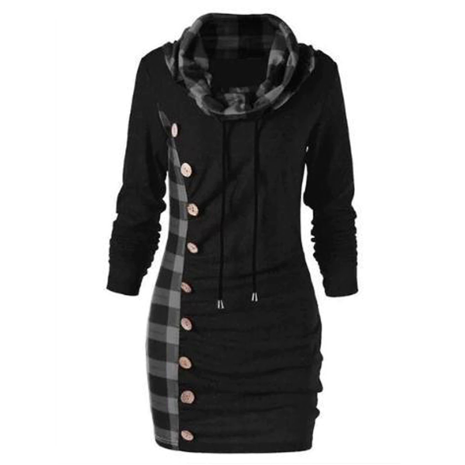 Plus Size Hoodies Plaid Stitched Drawstring Women Casual Button Long-sleeve Blouse Streetwear Sweatshirts Sudaderas Con Capucha