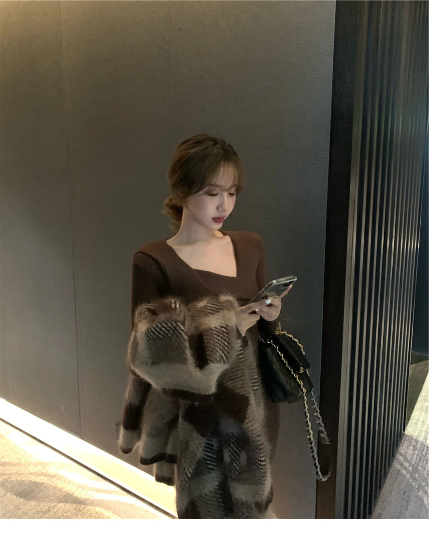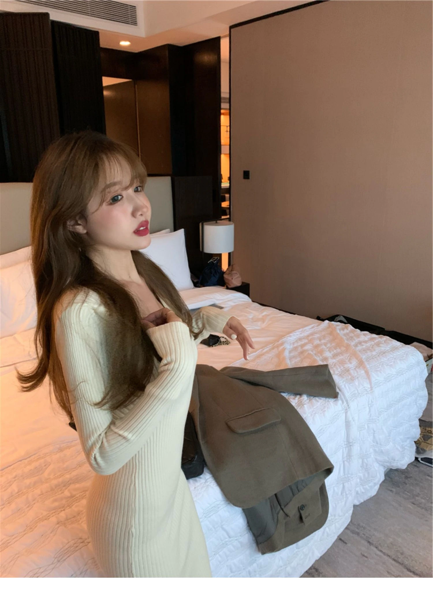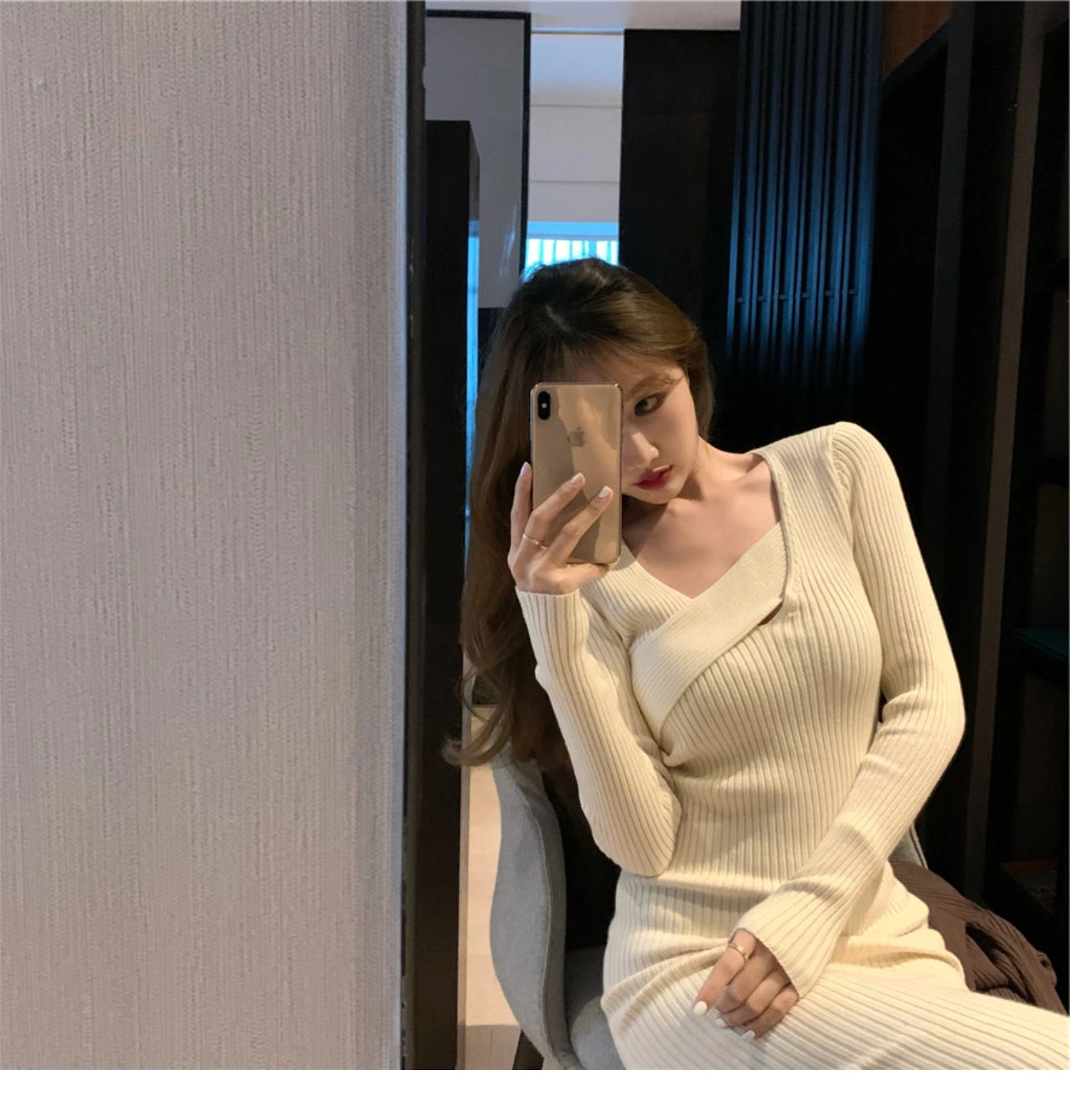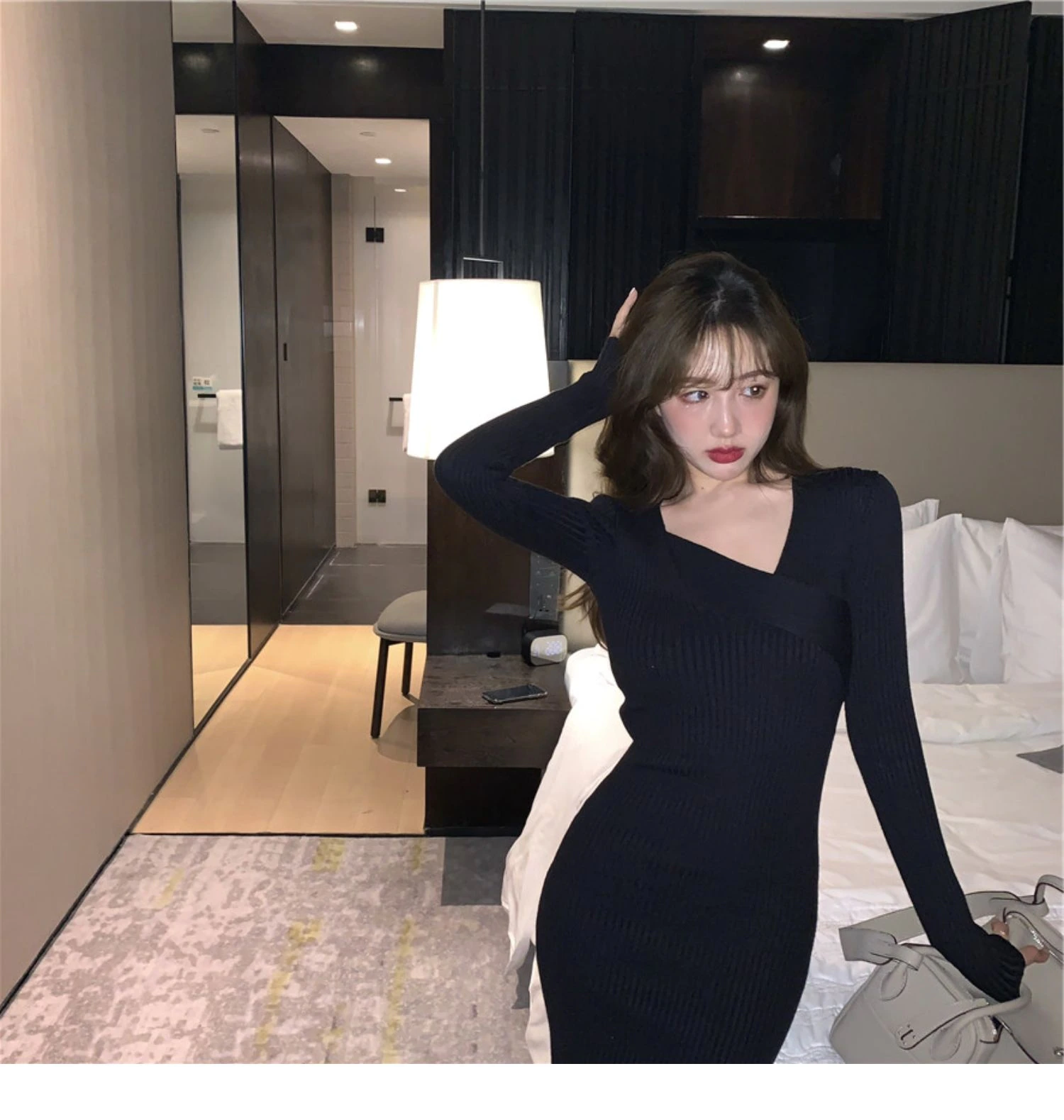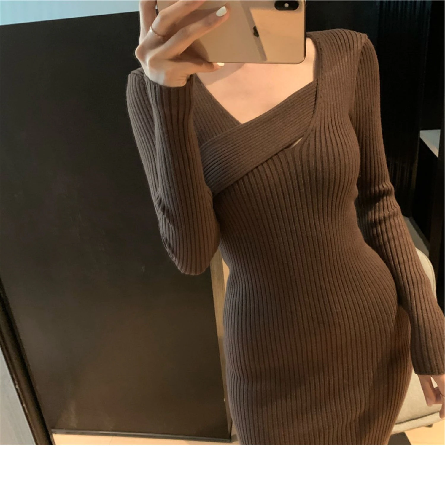 Vintage Knitted Dress Women Long Sleeve Sweater Elegant Party Dress Female Spring 2021 Office Lady Slim One-Piece Dress Korean