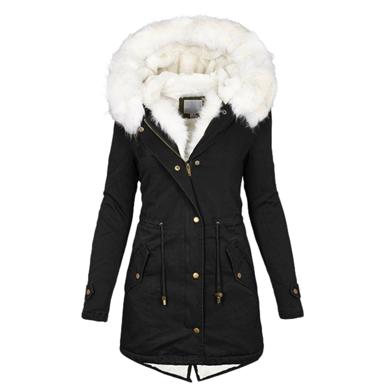 Women's Warm Hooded Thick Padded Outerwear Big Collar Jackets Women's Down Cotton Jacket Korean Version 2021 Winter Mid-length